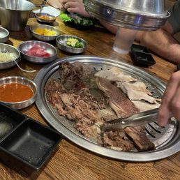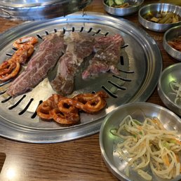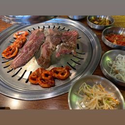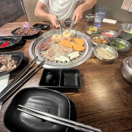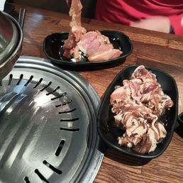 Just happened to stumble unto this spot while searching on Yelp in Eugene. My wife and I love KBBQ, and even more so if its AYCE! There was a slight wait when we first got there, which is usually a good sign, and despite being an AYCE we didn't have to wait for too long. They have 3 types of packages depending on the food you want, with seafood being on the premium tiers. For the 2 of us we were very content with the selection for the standard package and for the cost, you REALLY can't beat it. Having had most of our KBBQ in Portland and Seattle, the average cost for AYCE typically ranges from 35-50+, so this was a huge surprise for us. Meat selection is great. Quality seems up to par with most other KBBQ. We truly enjoyed the variations of Samgyeopsal. Side selection was a little lacking, but maybe that's because I prefer other sides like glass noodles and tofu.