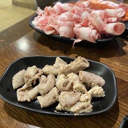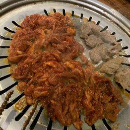 I've been interested in trying out the Korean BBQ thing for a while and we finally had the opportunity to try it out. We went with this location over other local options due to the number of meat options on the basic menu. There are rules that come with all you can eat like a time limit and a 10 dollar fee for wasting food if there are leftovers so show up hungry lol. You can order half portions so that you can try more different kinds of meat which I wish we had done more of. There are quite a few little sides and a small dish of rice but of course the star of the show is the insane amount of meat that you get to cook yourself. My hubby didn't love the whole raw meat on the same table as the cooked meat thing and yeah you definitely have to remember which utensils you used for what. Every meat option that we tried was yummy but I think I'll come back for one kind next time, probably the Hawaiian beef or the beef bulgoogi. The servers were attentive and brought us a new grill when ours was getting pretty messy and refills of meat and veggies when ever requested. Due to the lovely side effects of eating that much meat in one sitting I don't think I'd go with AYCE again but it was fun to try once!
